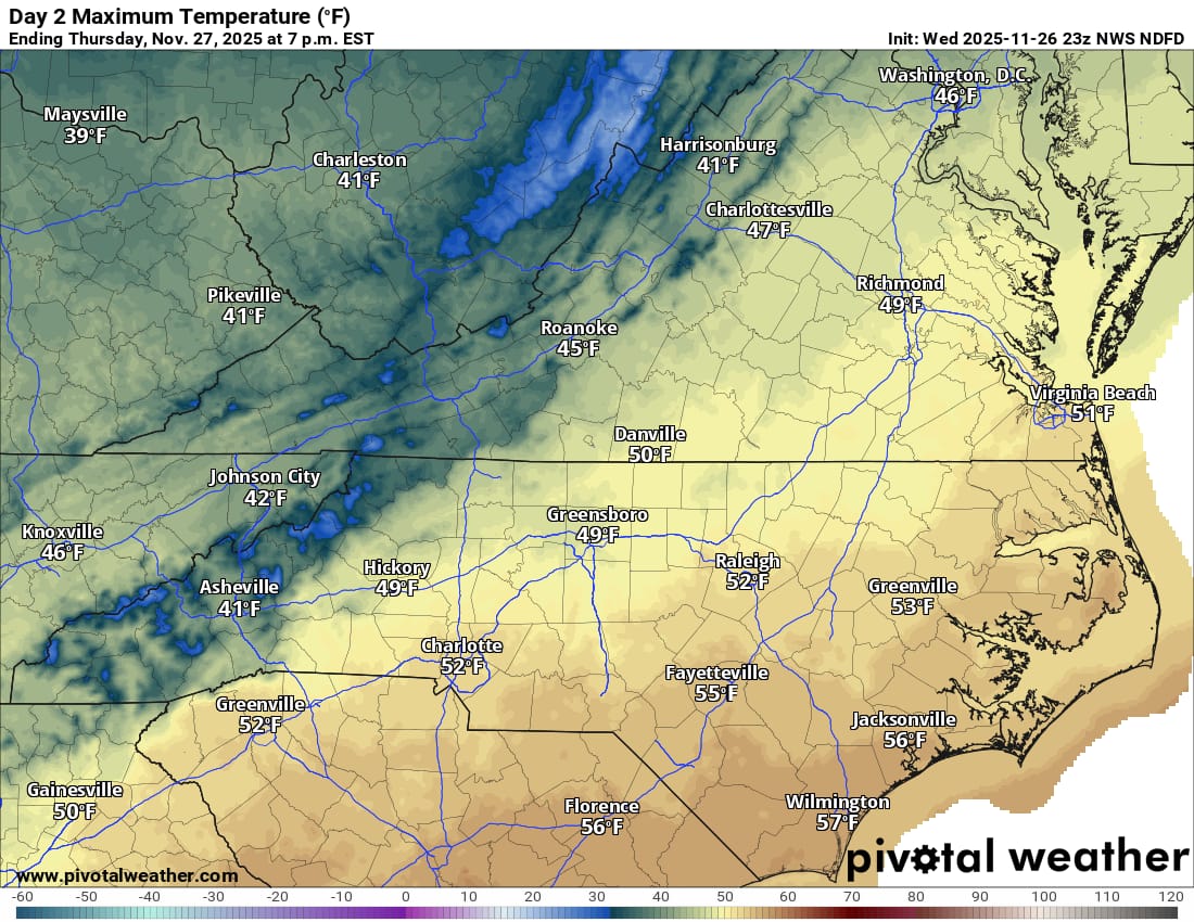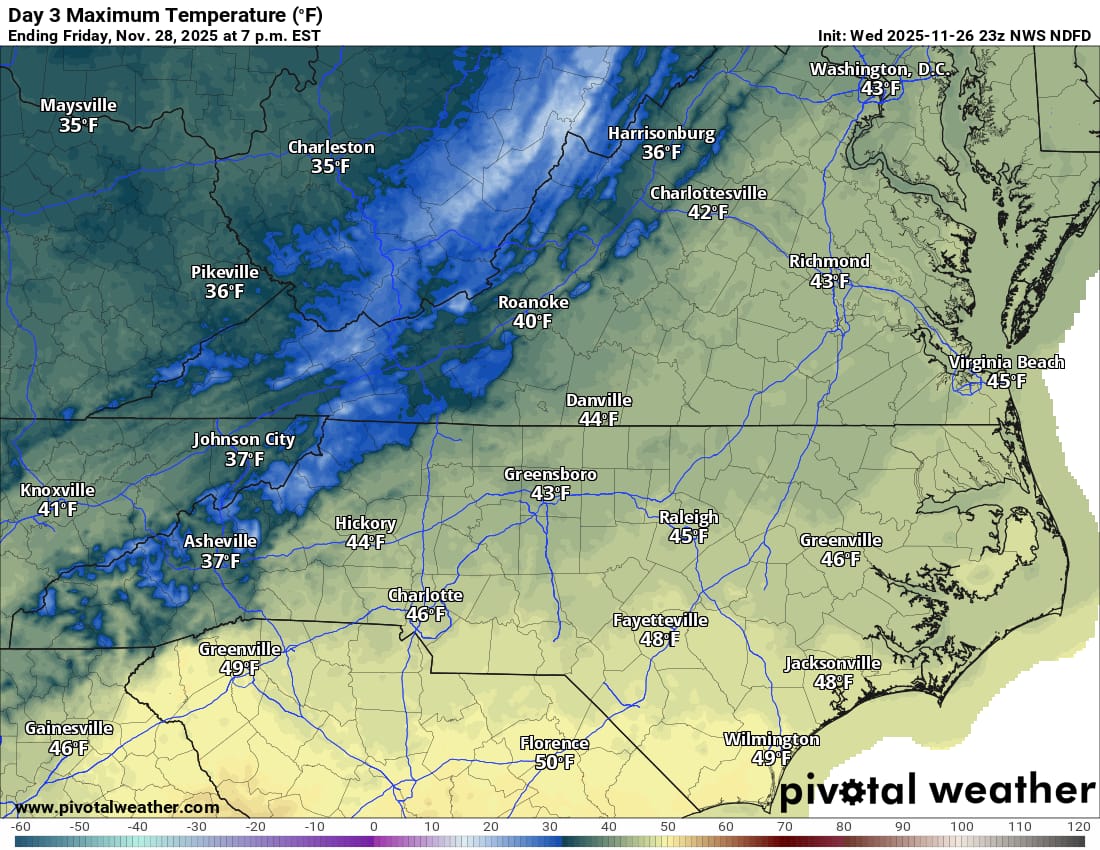 I’m keeping an eye on Tuesday, December 2nd for the possibility of our first wintry precip in parts of the state…so far looking like a freezing rain event across much of the Shenandoah Valley Monday night into Tuesday morning. (Cold rain for areas east of the mountains). Too soon to say how much ice accumulation may happen but I’ll have addition updates as we get closer.